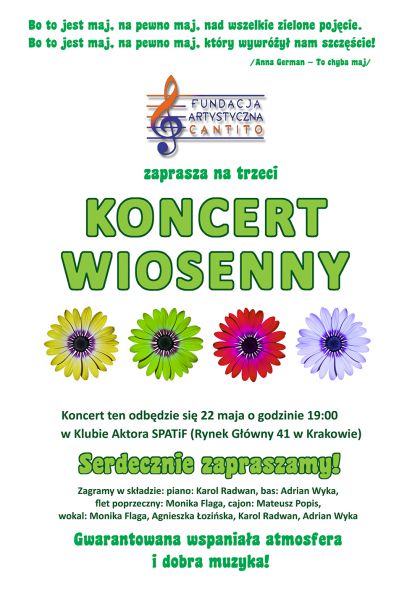 Zapraszamy bardzo serdecznie na trzeci z cyklu koncertów wiosennych pt. „To chyba maj”.