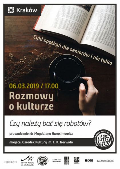 Choć o kulturze powiedziano już wiele, refleksja nad nią jest wciąż aktualna. Biblioteka Ośrodka Kultury im. C. K. Norwida zaprasza wszystkich chętnych do dyskusji nad szeroko pojętą kulturą oraz zdarzeniami, które wpłynęły na bieg historii, a których ślady są nadal widoczne. Spotkania będą odbywać się cyklicznie w pierwsze środy miesiąca o godzinie 17.00 i będą miały charakter rozmowy kierowanej, podczas której uczestnicy dowiedzą się ciekawych faktów, a także będą mogli przy herbacie podzielić się swoimi spostrzeżeniami na temat bieżącego zagadnienia. Mimo iż spotkania organizowane są głównie z myślą o seniorach, mile widziane będą także osoby dorosłe w różnym wieku. Jak bowiem stwierdził Benjamin Franklin: „nie starzeje się ten, kto nie ma na to czasu”.