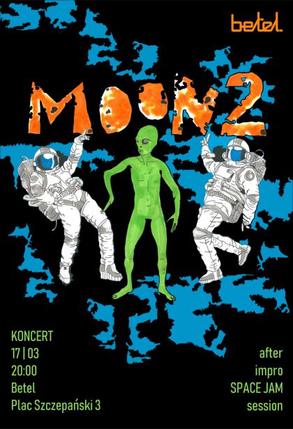 MOON2 to wirtualny świat z uproszczonymi prawami fizycznymi. W świecie tym dźwięki stają się obiektami, które podlegają naturalnym prawom fizycznym, takim jak grawitacja czy podmuch wiatru. Każdy koncert zespołu to nie tylko doznanie dźwiękowe, ale również intensywne doświadczenie wizualne: gesty performera są rejestrowane przy pomocy kamery i wpływają na dźwięki elektroniczne, zaprogramowane w języku SuperCollider. Gitara basowa oraz perkusja traktują swoje partie zarówno jako harmoniczno-rytmiczną bazę, jak i sonorystyczną improwizację.