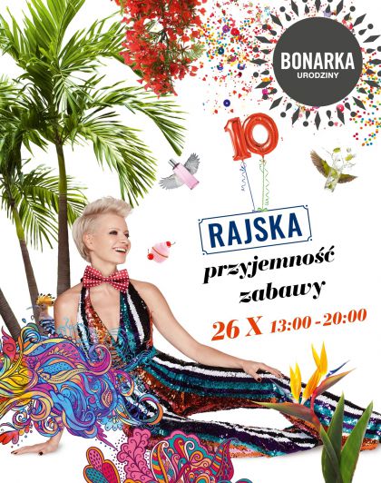 10. urodziny krakowskiej Bonarki upłyną pod znakiem rajskiej zabawy. W scenerii tropikalnej wyspy klienci centrum skorzystają z licznych atrakcji. Będą też świadkami spektakularnego świetlnego show oraz wezmą udział w konkursach i akcjach prosprzedażowych. Do wygrania jest wycieczka – oczywiście na rajską wyspę, oraz mnóstwo innych cennych nagród.