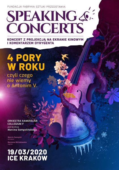 Podczas koncertu omawiamy niecodzienne okoliczności powstania Czterech Pór Roku, jednego z największych i najważniejszych przebojów wszech czasów. Przedstawiamy też postać́ Antonio Vivaldiego. Ukazujemy imponującą̨ różnorodność obszarów działań́ i niespodziewanych talentów włoskiego kompozytora i sensacyjne epizody z jego życia – wszystko po to, by udowodnić́, że Antonio V., podejmując rozliczne twórcze aktywności, był nieszablonowy i wyjątkowo zarazem efektywny! W programie, poza tytułowymi Porami, znajdą się słynne utwory mistrza, a całość zilustrujemy materiałami filmowymi zrealizowanymi specjalnie na potrzeby koncertu w Wenecji.