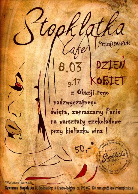 8 marca zapraszamy wszystkie Panie na słodkie warsztaty czekoladowe przy lampce ulubionego wina :)