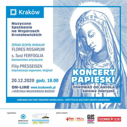 "Zdrowaś od Anioła – śpiewy maryjne" to podtytuł Koncertu Papieskiego, organizowanego w cyklu Muzyczne Spotkania na Wzgórzach Krzesławickich. Koncert wpisuje się w cykl wydarzeń, organizowanych z okazji przypadającej w 2020 roku setnej rocznicy urodzin Karola Wojtyły i ustanowionego z tego powodu przez Sejm Rzeczypospolitej Polskiej Roku Świętego Jana Pawła II. Pierwotnie odbyć miał się w październiku, ale ze względów sanitarnych został przeniesiony na grudzień i będzie transmitowany w Internecie.