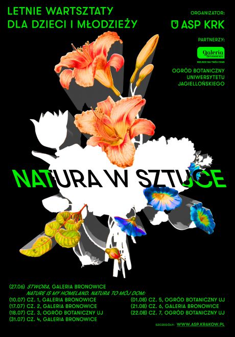 Akademia Sztuk Pięknych w Krakowie startuje z cyklem letnich warsztatów „Natura w sztuce”. ASP we współpracy z Galerią Bronowice oraz Ogrodem Botanicznym Uniwersytetu Jagiellońskiego zaprasza dzieci i młodzież do udziału w kreatywnych i artystycznych działaniach w naturze i z naturą.