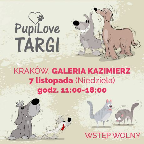 PupiLove Targi w Krakowie odbędą się w niedzielę 7 listopada na terenie Galerii KAZIMIERZ (poziom „0”). Targi możecie odwiedzić w godzinach 11:00 - 18:00.