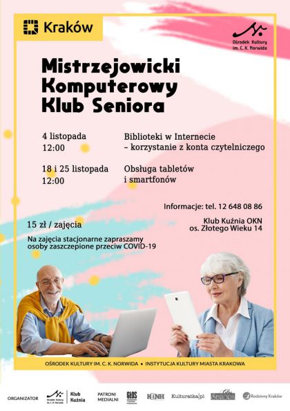 Mistrzejowicki Komputerowy Klub Seniora zaprasza na otwarte spotkania w Klubie Kuźnia OKN, os. Złotego Wieku 14 w Krakowie.