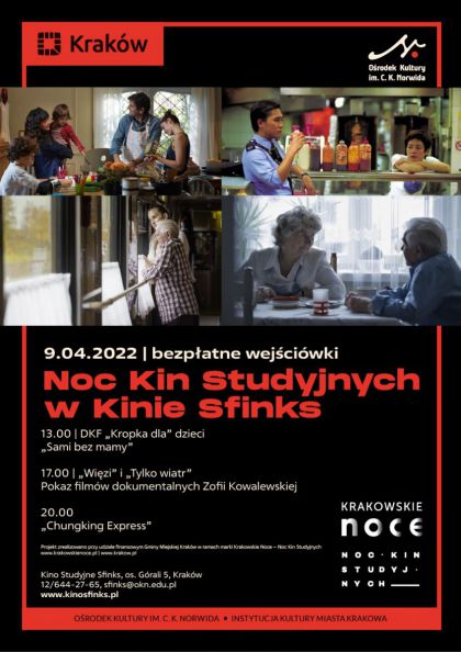 Kino Studyjne Sfinks zaprasza na 3. Noc Kin Studyjnych. W programie pokazy filmów: „Sami bez mamy”, „Tylko wiatr”, „Więzi”, „Chungking Express”.