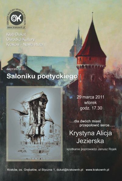 Klub Dukat Ośrodka Kultury Kraków-Nowa Huta zaprasza 29 marca 2011 r. o godz. 17.30 do Saloniku Poetyckiego.