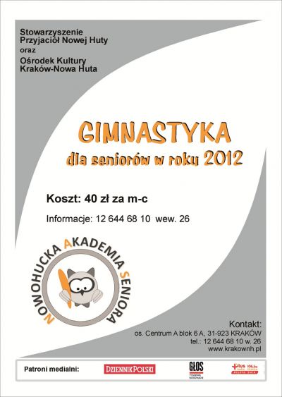 Nowohucka Akademia Seniora zaprasza na zajęcia gimnastyczne dla osób starszych.