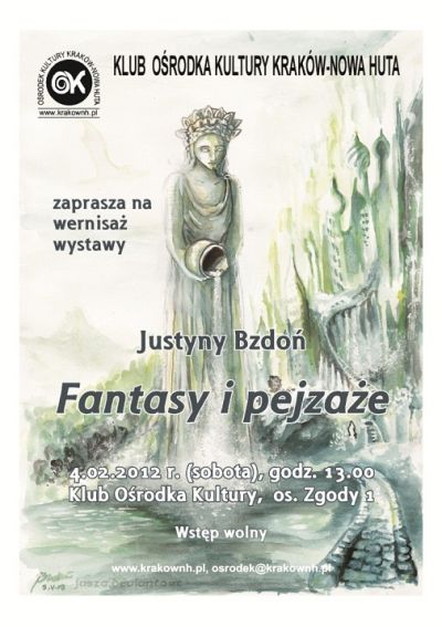 Zapraszamy na wernisaż wystawy młodej artystki Justyny Bzdoń. Autorka jest amatorką i już od dzieciństwa zajmuje się rysowaniem. Najczęściej tworzy fantasy i pejzaże przy użyciu farb olejnych, tuszu, akwareli oraz węgla. Często inspiracją jej twórczości są dzieła Tolkiena. Oprócz tradycyjnego rysunku tworzy również grafikę komputerową.