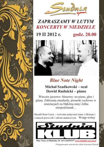 Wieczór jazzowo- blusowy: na piano, głos i gitarę. Zabrzmią standardy, piosenki rockowe w aranżacjach na błękitną nutę i kilka niespodzianek…