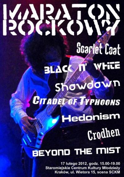 Na scenie 17 lutego w godz. 15.00-19.00 wystąpią zespoły działające w SCKM: Scarlet Coat, Black n’ White, Showdown, Citadel of Typhoons, Hedonism, Crodhen, Beyond The Mist.