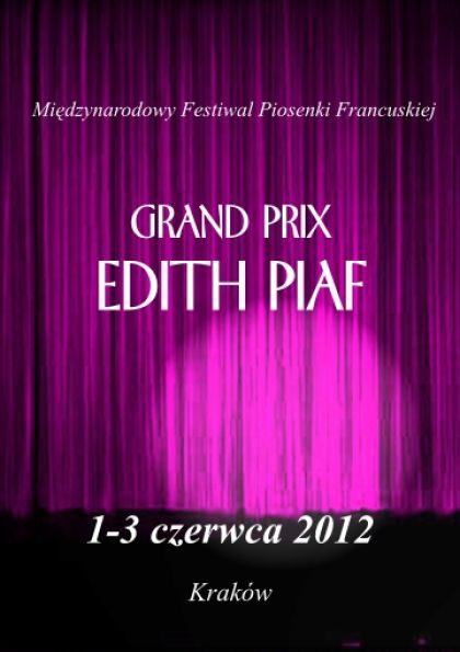 Zapraszamy miłośników piosenki francuskiej oraz wszystkich wokalistów do udziału w konkursie o Grand Prix Edith Piaf w dniach 1-3 czerwca 2012. Zgłoszenia uczestników przyjmujemy do 30 kwietnia 2012. Eliminacje I stopnia od 12 maja, II stopnia 1 czerwca.