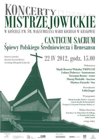 W RAMACH CYKLU: KONCERTY MISTRZEJOWICKIE - CANTICUM SACRUM. ŚPIEWY POLSKIEGO ŚREDNIOWIECZA I RENESANSU