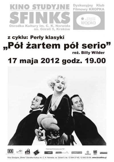 „Pół żartem pół serio” (130`) reż. Billy Wilder, USA 1959, wyst. Marilyn Monroe