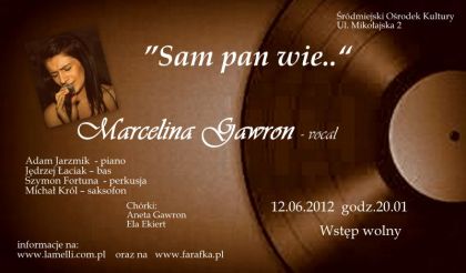 Marcelina Gawron - solistka, wokalistka, absolwentka wydziału Jazzu i Muzyki Estradowej Gdańskiej Akademii Muzycznej.