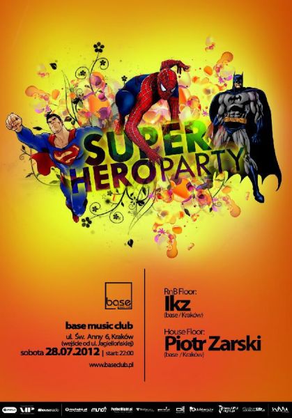 28 lipca w Base music club impreza, której doczekać się nie możemy :D Lubicie komiksy, super bohaterów, macie swoje ulubione postaci? Super Hero Party to impreza kostiumowa! Przebierz się za swojego ulubionego super bohatera, a dostaniesz specjalne super-zniżki do wykorzystania przy barze :)