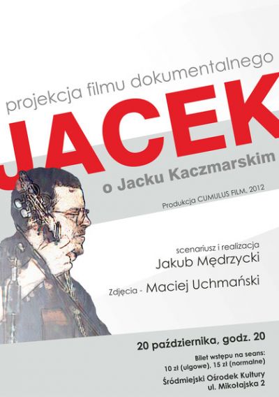 "Jacek" miał być życiem Kaczmarskiego w pigułce. Najpierw w planach był pełnometrażowy dokument fabularyzowany, ale w końcu stanęło na dokumencie w czystej postaci. Pięćdziesiąt minut filmu wypełnionych jest wypowiedziami ludzi, którzy wywarli wpływ na życie arysty i poznali go na różnych etapach kariery – od czasów szkolnych, poprzez działalność w Radiu Wolna Europa, aż po czasy nie tak odległe. O Kaczmarskim opowiadają m.in. Barbara Kryda, Przemysław Gintrowski, Piotr Gierak, Daniel Olbrychski, Seweryn Blumsztajn czy Jarosław Lindenberg. Wypowiedzi przetykane są, wcześniej niepublikowanymi, ujęciami z koncertów, na przykład z trasy koncertowej z lat 90.