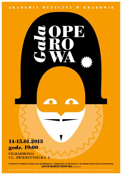 14 i 15 stycznia 2013 roku w Sali Koncertowej Filharmonii Krakowskiej, odbędzie się Gala Operowa na której Studenci Wydziału Wokalno-Aktorskiego wraz z Orkiestrą Symfoniczną Akademii Muzycznej w Krakowie pod batutą Adama Korzeniowskiego, wykonają prawdziwe perełki twórczości operowej.