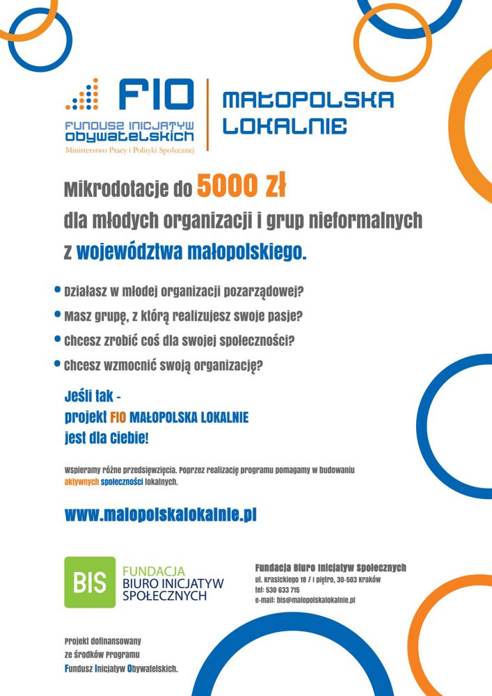 FIO MAŁOPOLSKA LOKALNIE - Konkurs na mikrodotacje do 5.000 zł.