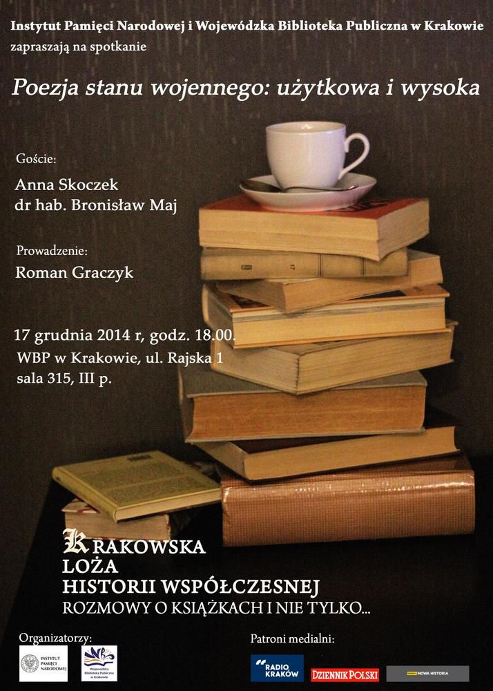 Poezja stanu wojennego: użytkowa i wysoka - spotkanie z cyklu „Krakowska Loża Historii Współczesnej”