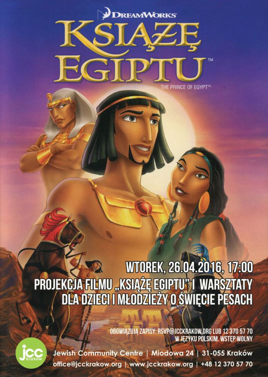 Projekcja filmu „Książę Egiptu” i warsztaty dla dzieci i młodzieży o święcie Pesach.
