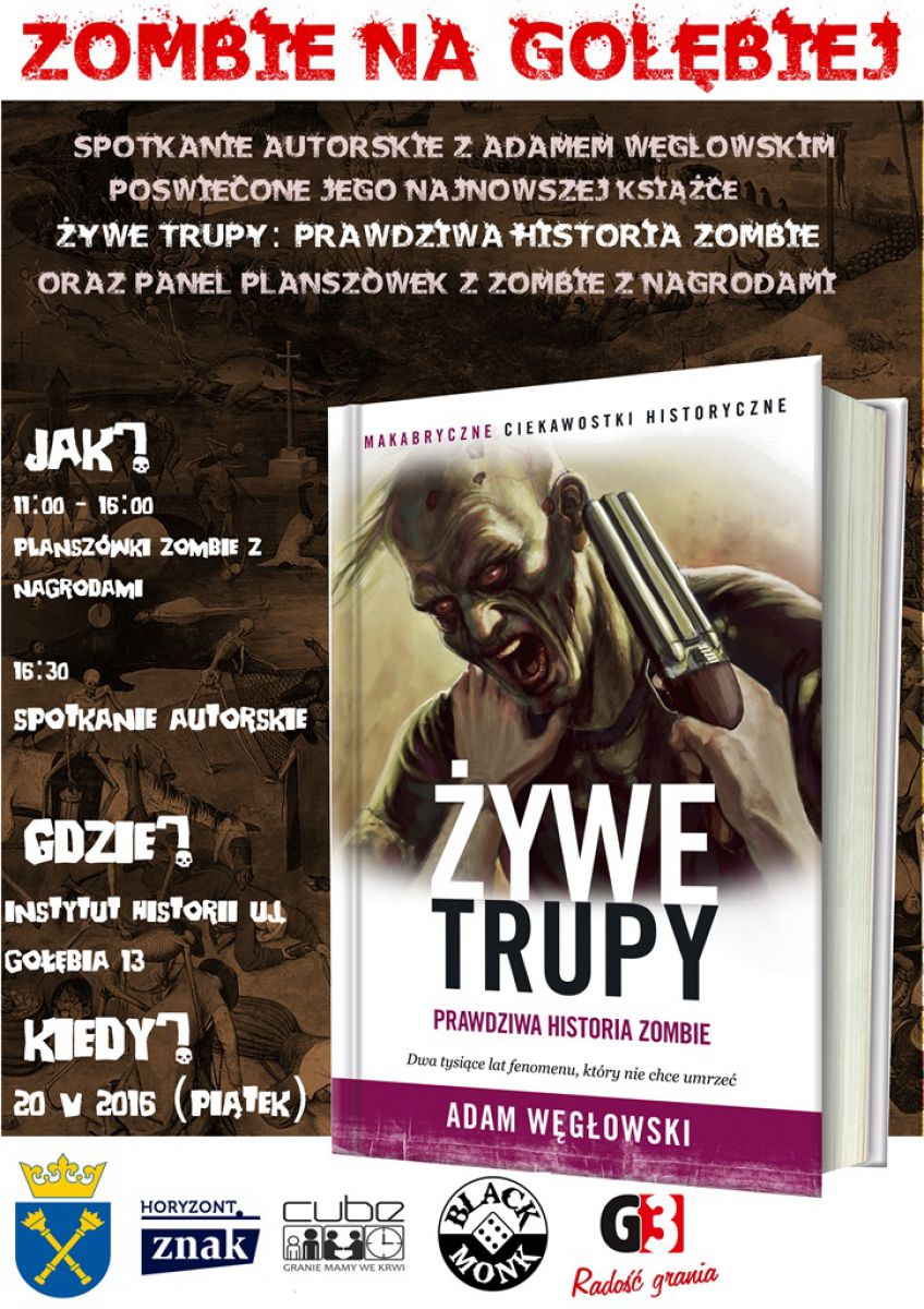 "Zombie na Gołębiej" - gry planszowe o tematyce zombie oraz spotkanie z Adamem Węgłowskim, autorem książki "Żywe trupy. Prawdziwa historia zombie".