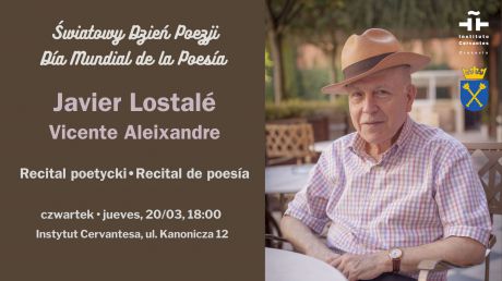 | W ramach obchodów Światowego Dnia Poezji, Instytut Cervantesa w Krakowie ma przyjemność zaprosić na recital poezji Javiera Lostalé (Madryt, 1942), hiszpańskiego poety pokolenia lat 70., laureata Narodowej Nagrody za Promocję Czytelnictwa, oraz Vicente Aleixandre (Sewilla, 1898 – Madryt, 1984), laureata Nagrody Nobla w dziedzinie literatury z 1977 roku i przedstawiciela Pokolenia 27. Wydarzenie odbędzie się w czwartek, 20 marca, o godz(...) ... więcej » |