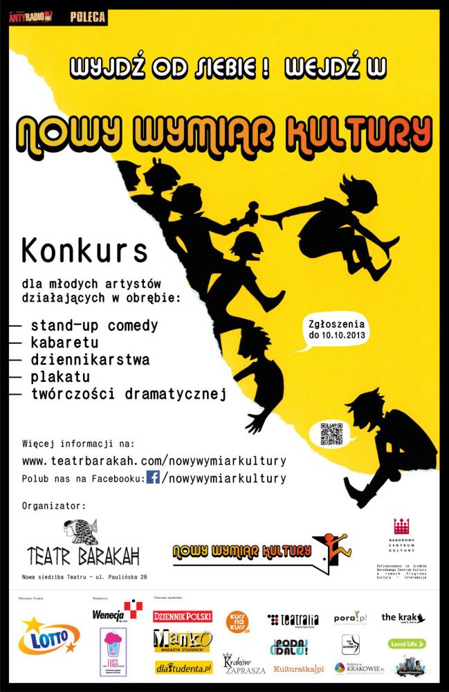 Nowy Wymiar Kultury - KONKURS: kabaret i stand up, plakat, dziennikarstwo, dramat