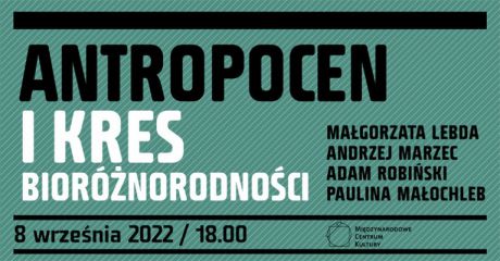 W jaki sposób intelektualnie przetworzyć te informacje, by nie popaść w depresję klimatyczną? Co możemy zrobić, aby zapobiec tej niespotykanej katastrofie? Jak kres bioróżnorodności wpływa na nasze myślenie o zwierzętach? O powyższych kwestiach dyskutować będą Małgorzata Lebda, Andrzej Marzec, Adam Robiński, a rozmowę poprowadzi Paulina Małochleb.