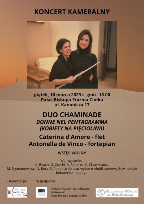 Włoski Instytut Kultury w Krakowie we współpracy z Konserwatorium Krakowskim im. Witolda Lutosławskiego oraz Oddziałem Muzeum Narodowego – Pałac Biskupa Erazma Ciołka zapraszają na koncert kameralny