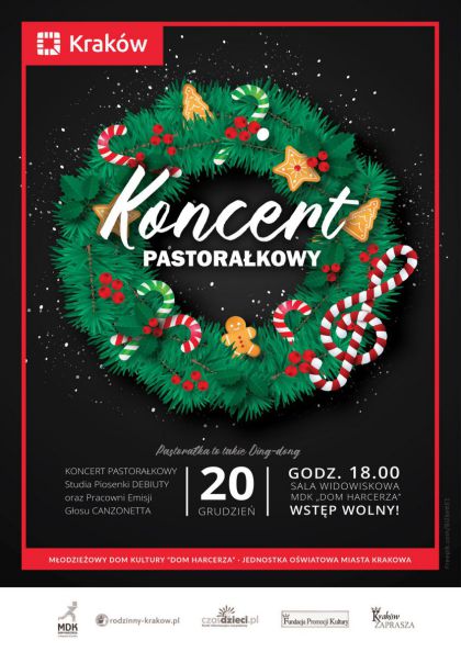 Młodzieżowy Dom Kultury "Dom Harcerza" zaprasza na Koncert pastorałkowy "Pastorałka to takie ding-dong". W roli głównej uczestnicy zajęć Studia Piosenki DEBIUTY oraz Pracowni Emisji Głosu CANZONETTA.
