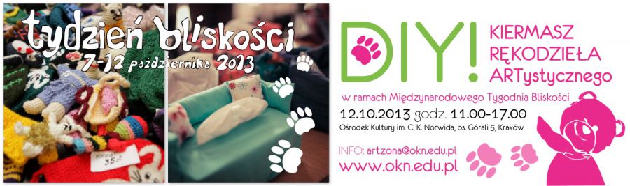 W imieniu Organizatorów krakowskiej edycji Międzynarodowego Tygodnia Bliskoci portalu Ekorodzice.pl i Orodka Kultury im. C. K. Norwida - serdecznie zapraszamy na Kiermasz Rękodzieła ARTystycznego, który odbędzie się w ramach tego wydarzenia.