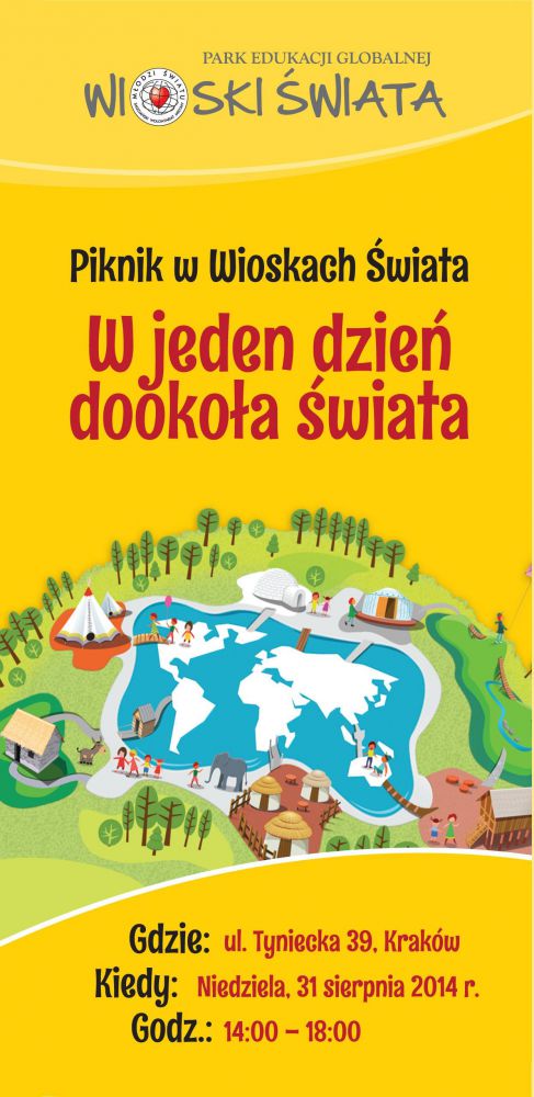 31 sierpnia 2014 r. przy ul. Tynieckiej 39 w Wioskach Œwiata – Parku Edukacji Globalnej odbędzie się, skrywajšcy moc niespodzianek, piknik „W jeden dzień dookoła œwiata”, przygotowywany przez Salezjański Wolontariat Misyjny „Młodzi Œwiatu”. Będzie to wspaniała okazja do wspólnej wielopokoleniowej zabawy i nauki, aktywnego i niecodziennego odpoczynku, niezależnie od wieku. W programie imprezy warsztaty i gry, podczas których udamy się w międzykulturowš podróż dookoła œwiata. Każdy znajdzie coœ dla siebie!