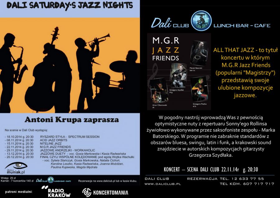 Zapraszamy na koncert M.G.R JAZZ FRIENDS.