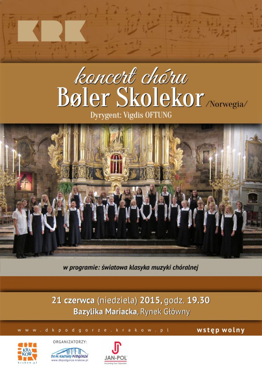 Dom Kultury Podgórze zaprasza na koncert chóru Bøler z norweskiego Oslo w koœciele Mariackim.
