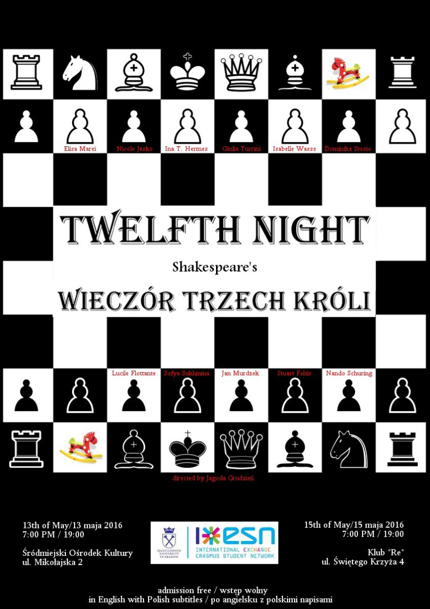 Dlatego serdecznie zapraszamy na spektakl "Wieczór Trzech Króli" ("Twelfth Night") - historię miłosnego trójkšta (czworokšta? Pięciokšta? Szeciokšta?...) á rebours.