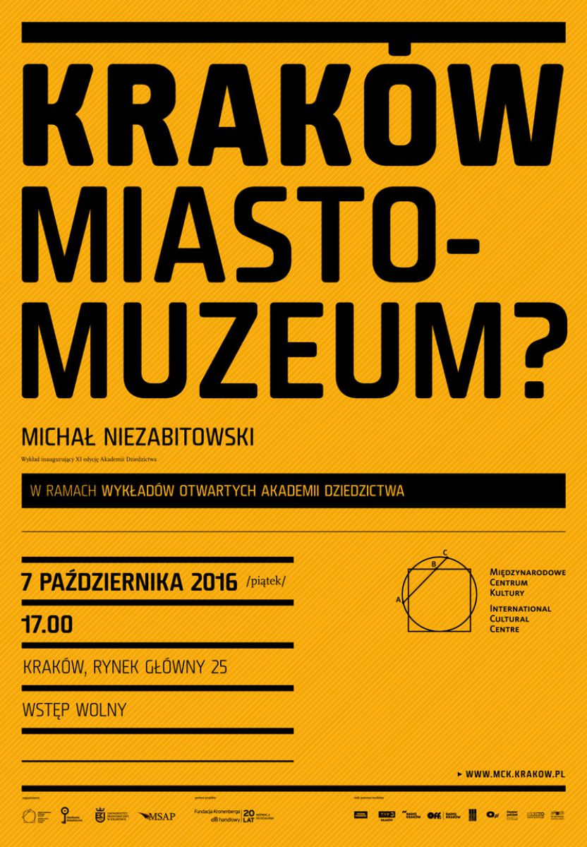 W pištek, 7 padziernika 2016 r. Michał Niezabitowski, dyrektor Muzeum Historycznego Miasta Krakowa wykładem zatytułowanym Kraków. Miasto-muzeum? zainauguruje 11. edycję studiów podyplomowych Akademia Dziedzictwa.