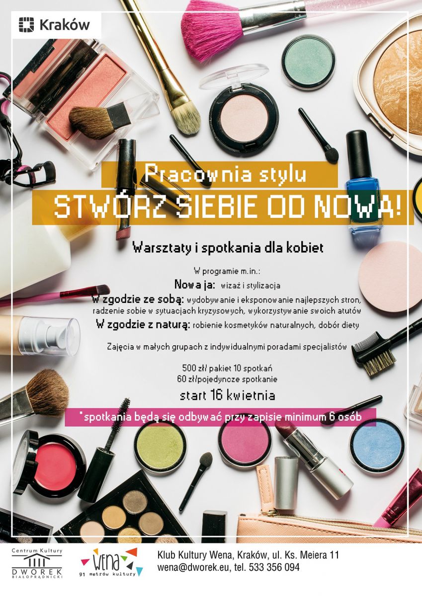 Do końca tygodnia czekamy na zapisy do Pracowni Stylu: 23 kwietnia rusza cykl kameralnych spotkań z wizażystkš, stylistkš, trenerkš rozwojowš i dietetyczkš. Pracownia to dziesięć dwugodzinnych praktycznych warsztatów, podczas których uczestniczki pod kierunkiem doœwiadczonej wizażystki Marty Mazur poznajš m.in. zasady pielęgnacji cery, konturowania twarzy i oczu, makijażu dziennego i wieczorowego, sposoby na podkreœlanie walorów i tuszowanie niedoskonałoœci. Na warsztatach ze stylistkš będzie można przeanalizować swój typ kolorystyczny oraz typ sylwetki i na tej podstawie dobrać optymalne ubiory. Na spotkaniach z trenerkš rozwojowš będš ćwiczenia podnoszšce poczucie własnej wartoœć i wspierajšce asertywnoœć. A to wszystko za jedyne 500 zł/osoba/ pakiet dwugodzinnych spotkań!