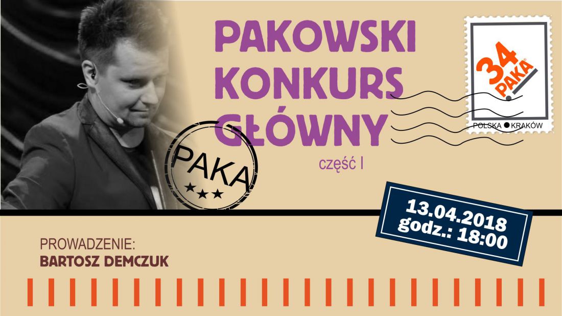 Konkurs Główny to ostatni, decydujšcy etap 34. Przeglšdu Kabaretów PAKA. Dla uczestników to już ostatnia prosta w drodze do kabaretowej kariery. Ponownie muszš zaprezentować się z jak najlepszej strony przed publicznociš i jurorami. To podczas tych dwóch wieczorów, Jury Główne wybierze zwycięzców. Zgromadzona publicznoć również będzie mogła dorzucić swoje 3 grosze, ponieważ każdy widz ma przywilej oddania jednego głosu na artystę, który- według niego- wypadł najlepiej.