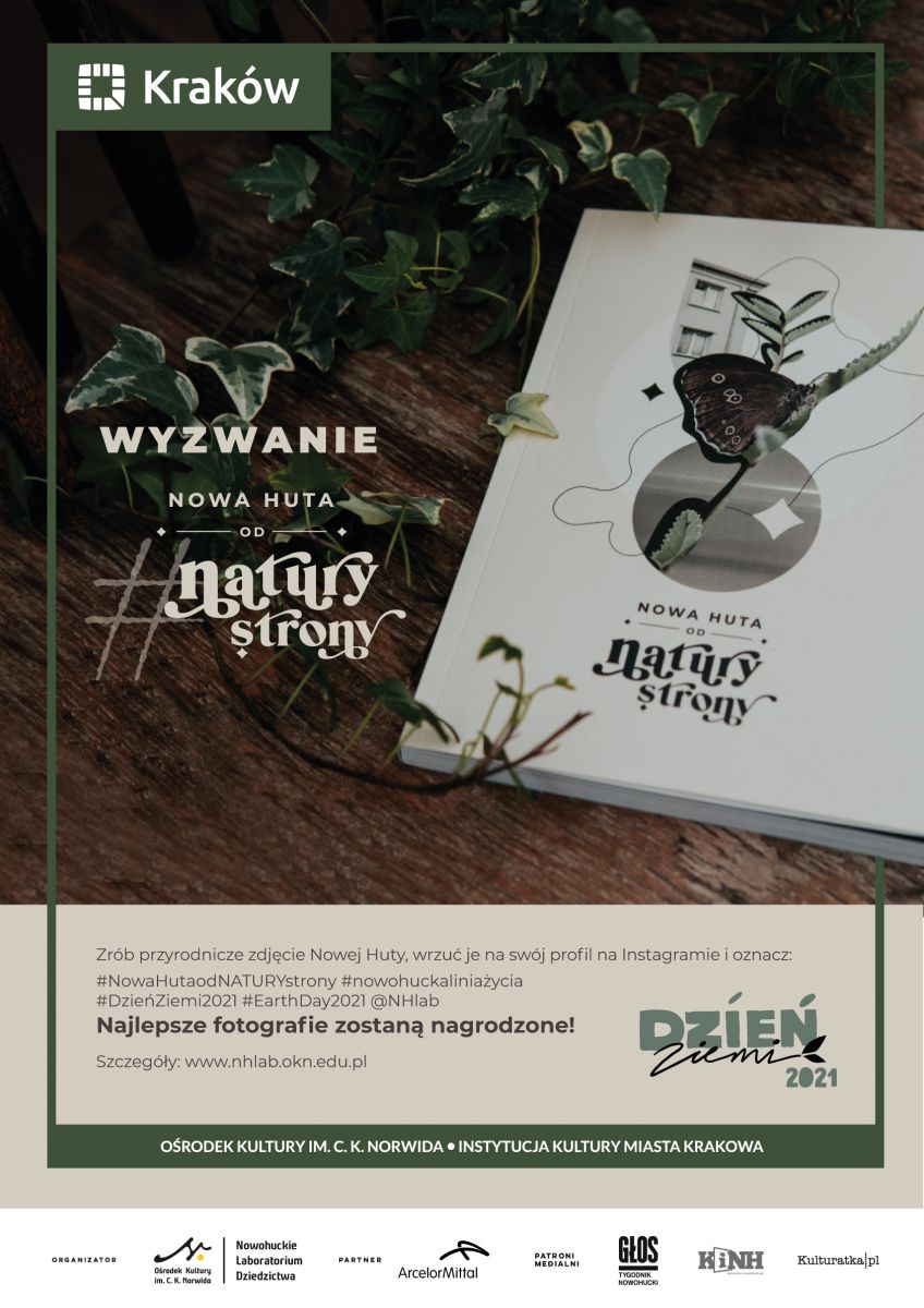 Konkurs fotograficzny na Instagramie z okazji Dnia Ziemi 2021. Zrb przyrodnicze zdjcie Nowej Huty, wrzu je na swj profil na Instagramie w dniach 12-22 kwietnia 2021 r. i oznacz: #NowaHutaodNATURYstrony #nowohuckaliniaycia #DzieZiemi2021 #EarthDay2021 @NHlab. Trzy najlepsze fotografie zostan nagrodzone ksikami Nowa Huta od NATURY strony!
