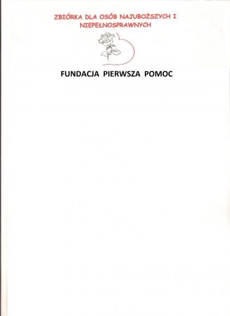 Fundacja Pierwsza Pomoc zajmuje się udzielaniem pierwszej pomocy materialnej osobom najuboższym i niepełnosprawnym. Pod stałš opiekš ma ponad 100 rodzin, głównie z terenów popeegierowskich oraz Podkarpacia. rodki pomocowe przekazywane sš na zakup żywnoć, rodków czystoci, artykułów szkolnych, odzieży, ale również na wsparcie najuboższych w opłatach mieszkaniowych.