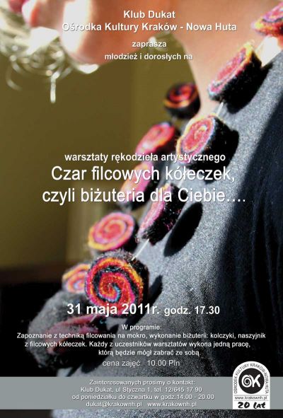 Klub Dukat Oœrodka Kultury Kraków – Nowa Huta (ul. Styczna 1) zaprasza na warsztaty rękodzieła artystycznego 31 maja (wtorek) 2011 r. godz. 17.30.